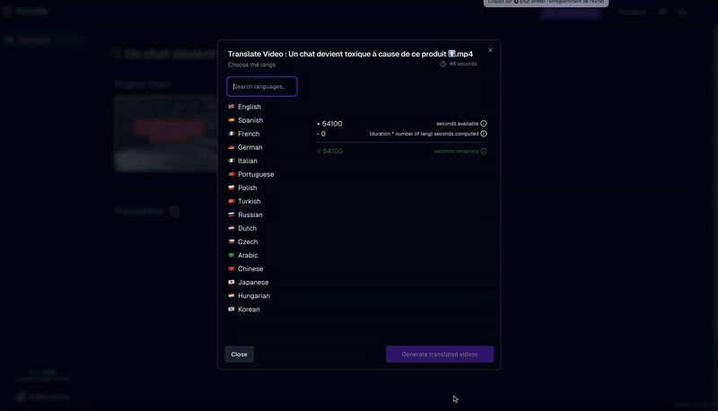 Download your videos or podcasts translated in multiple languages, with their translated subtitles